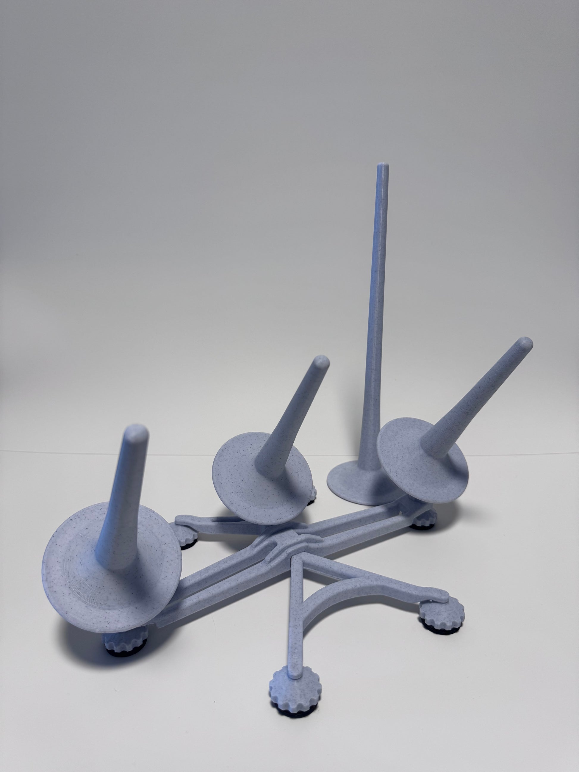 This is our mainstay yarn spinner, with a triple ball attachment all white everything. These stands are made with non slip feet so they don’t slide away and quality bearings so the yarn falls off the reel. The attachment is easily removable. All stands are compatible with all attachments, if you need or want anything more in the future it’ll work with this!